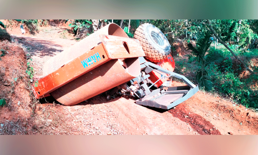 അപകടത്തിൽപെട്ട റോഡ് റോളർ